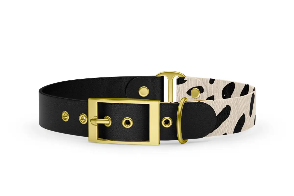 Step into a world where nature meets luxury. The Spots collection is designed for dogs who want to express their wildness and style through their appearance. Animal patterns combined with a soft beige background and golden metal components create the perfect mix of elegance and originality. All products are designed with maximum attention to your dog's comfort, while the golden details add an exclusive look to every step.